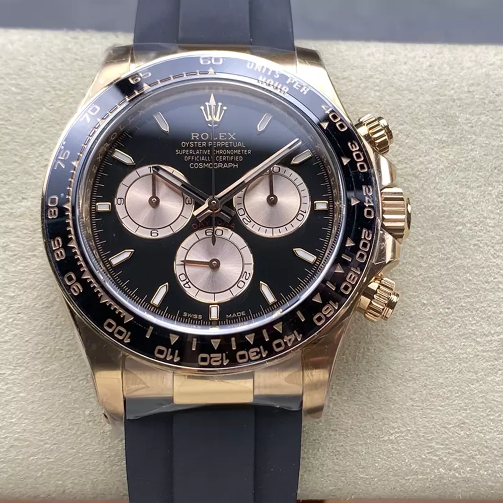 • 클린공장 롤렉스 데이토나 블랙 인덱스 다이얼 로즈 골드 러버밴드 126518