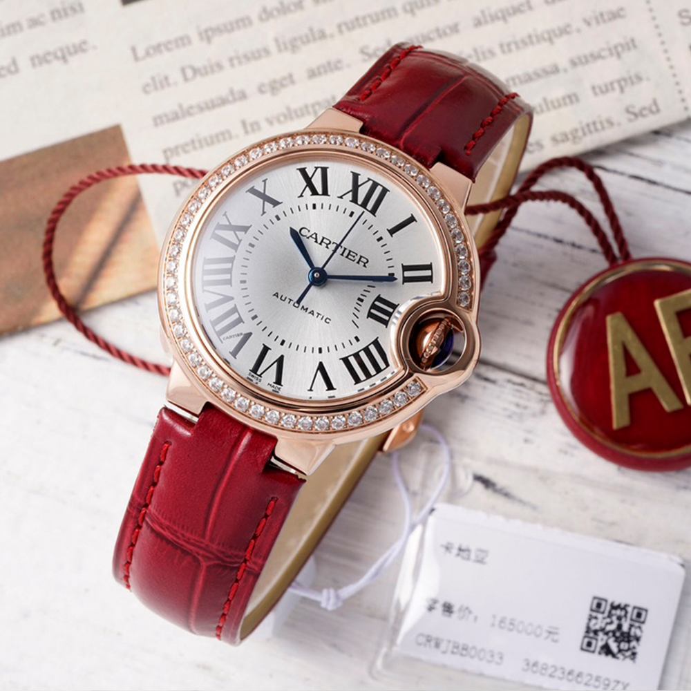 • AF공장 까르띠에 발롱 브루 드 로즈골드 다이아 베젤 / 레드 가죽밴드 33mm