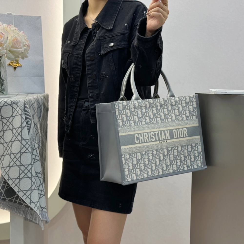 • 디올 미디엄 북 토트백 오블리크 자카드 그레이