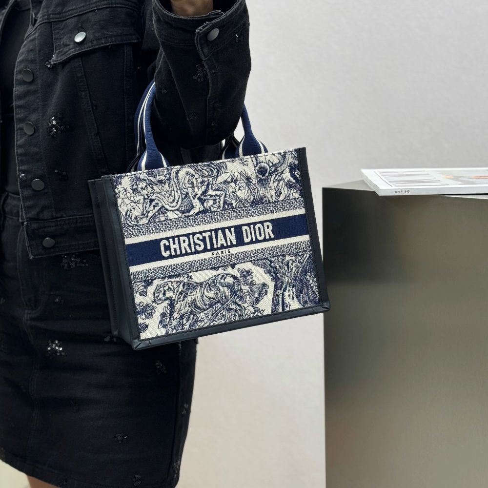 • 디올 스몰 북 토트백 트왈 드 주이 소바쥬 자수 화이트 네이비 블루