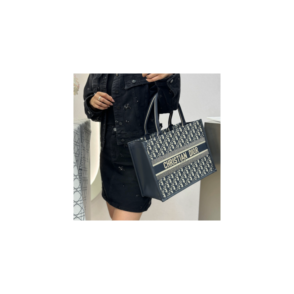 • 디올 미디엄 북 토트백 오블리크 자카드 블루