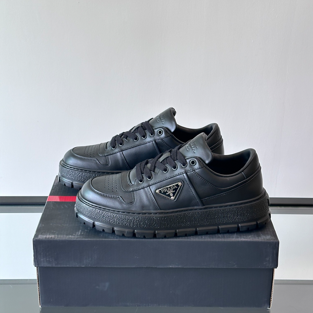 프라다 패딩 나파 레더 레이스업 스니커즈 블랙 > 신발