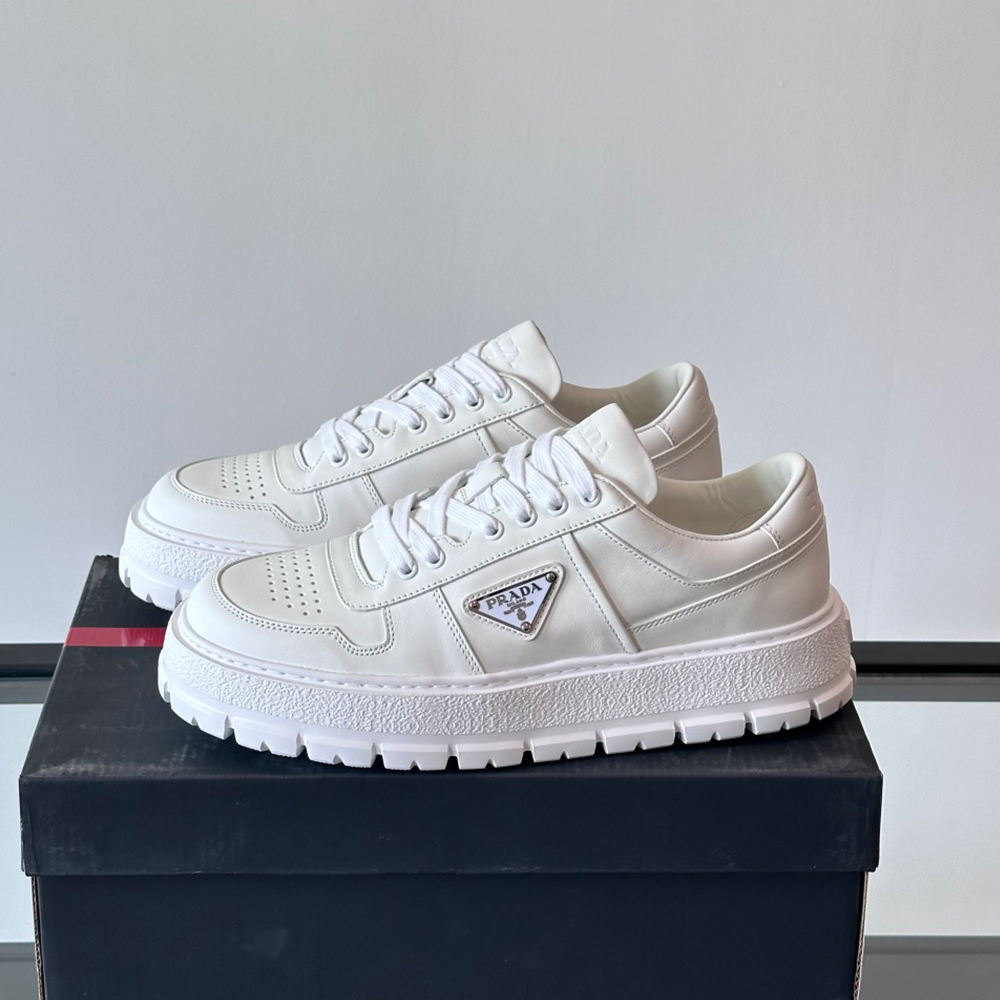 프라다 패딩 나파 레더 레이스업 스니커즈 화이트 > 신발