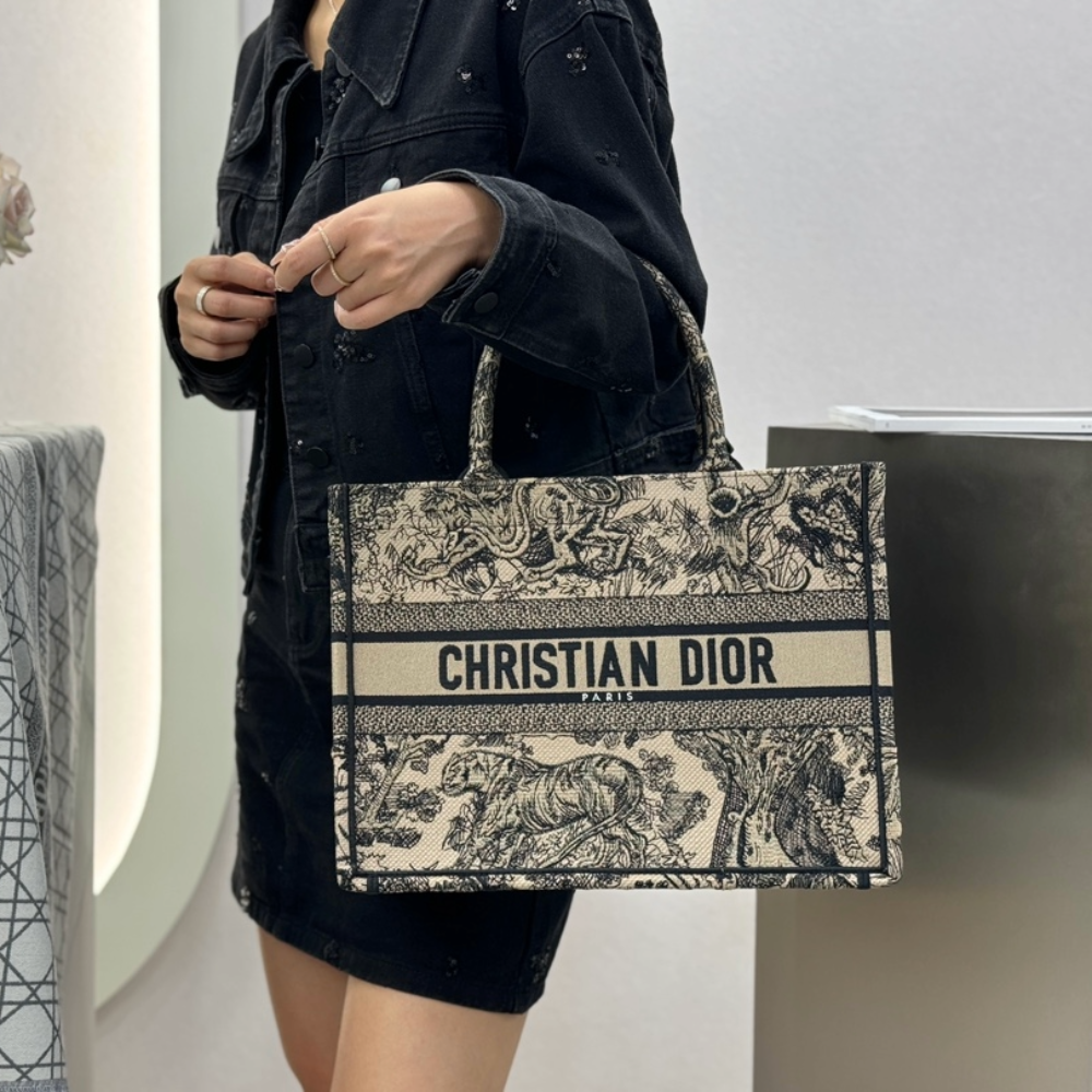 • 디올 미디엄 북 토트백 베이지 트왈 드 주이 자수