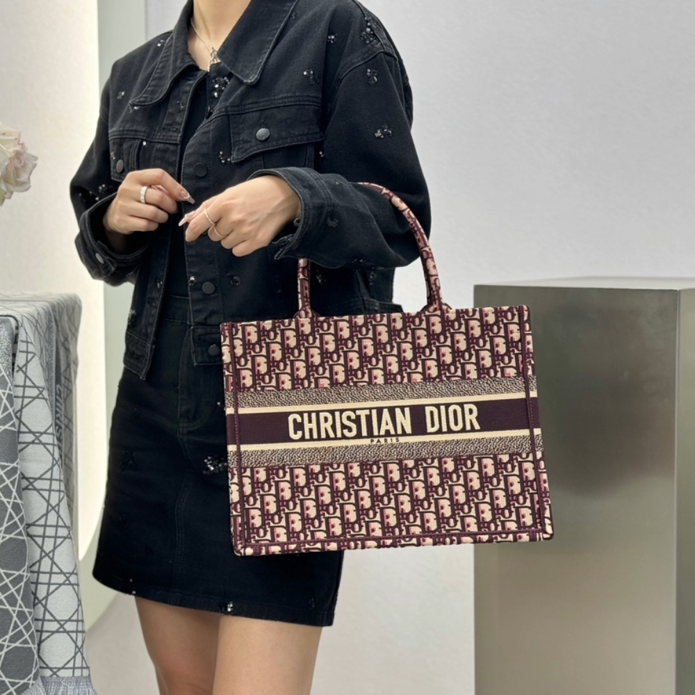 • 디올 미디엄 북 토트백 레드 오블리크 자수