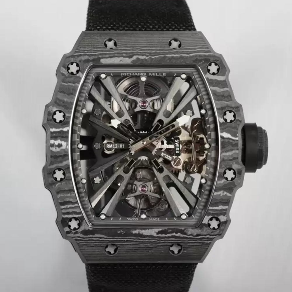 • RM공장 리차드밀 RM12-01 투르비용 리미티드 에디션 블랙카본 블랙 스트랩밴드