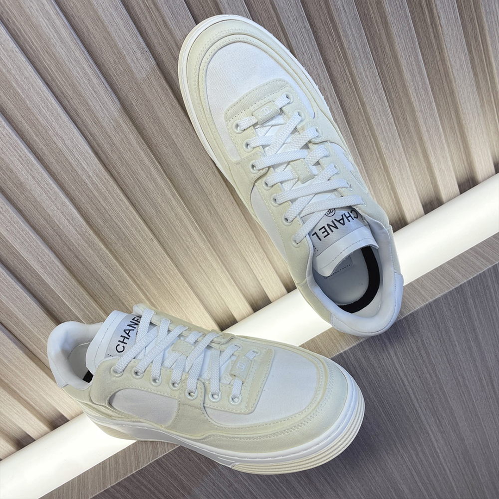 샤넬 스웨이드 키드스킨 & 베이지 화이트 스니커즈 > 신발