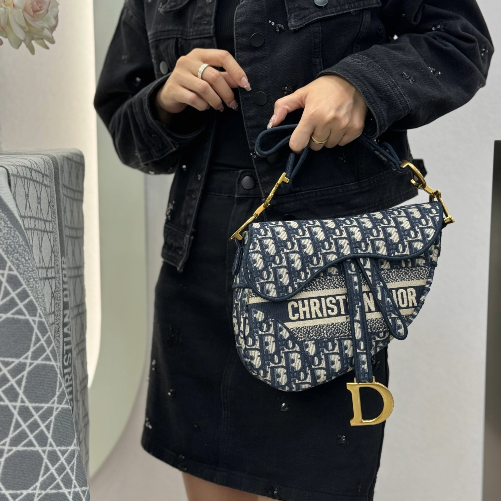 • 디올 미디엄 새들 스트랩 백 오블리크 자카드 패브릭