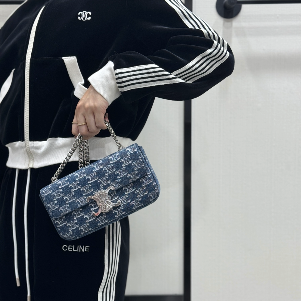 • 셀린느 트리오페 체인 숄더백 데님 은장 197993