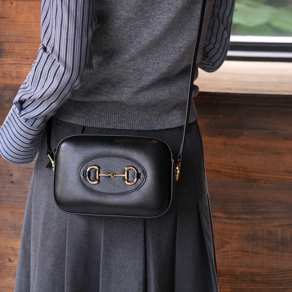 • 구찌 홀스빗 1955 크로스 숄더백 블랙 레더 760196