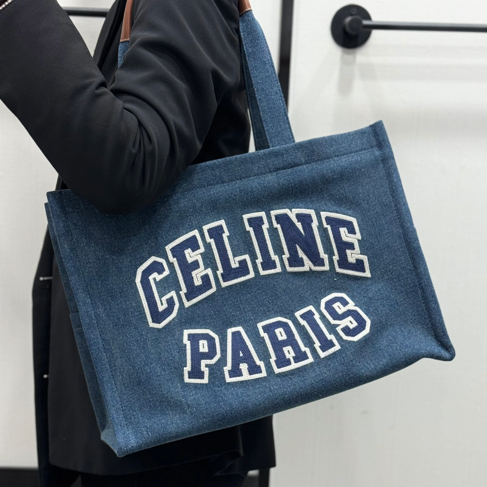 셀린느 파리 데님 카프스킨 라지 카바스 타이스 네이비 탄 196762 > 여성 가방