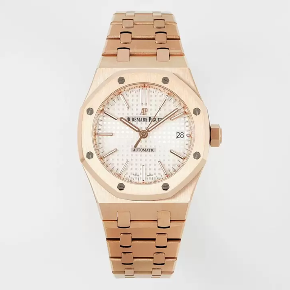 • IP공장 오데마피게 로얄오크 화이트 다이얼 로즈골드 금통 37mm 15450