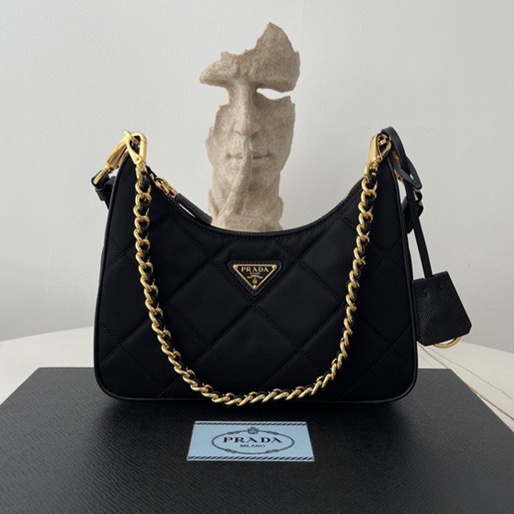 • 프라다 삼각 로고 리에디션 1995 체인 리나일론 미니백 블랙 1BC204