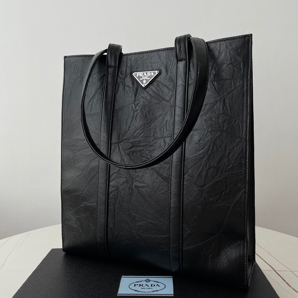 • 프라다 링클 나파 스몰 토트백 블랙 1BG459