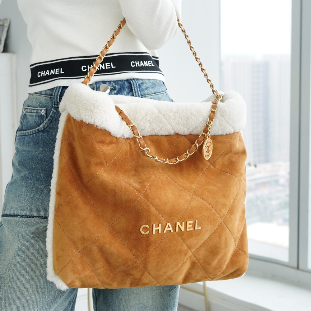 팬더샵 샤넬 23B 시어링 램스킨 22백 카라멜 화이트 > 여성 가방