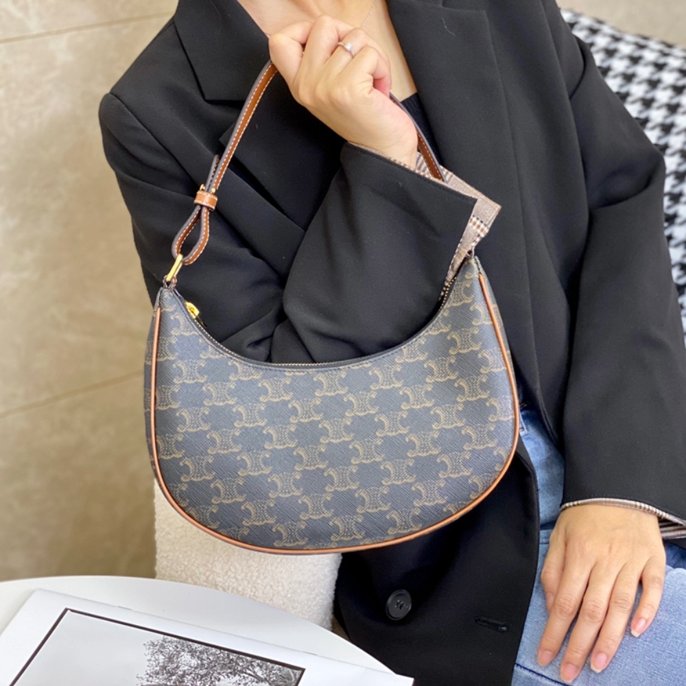 • 셀린느 아바 숄더백 트리오페 캔버스 카프스킨 탄 193952