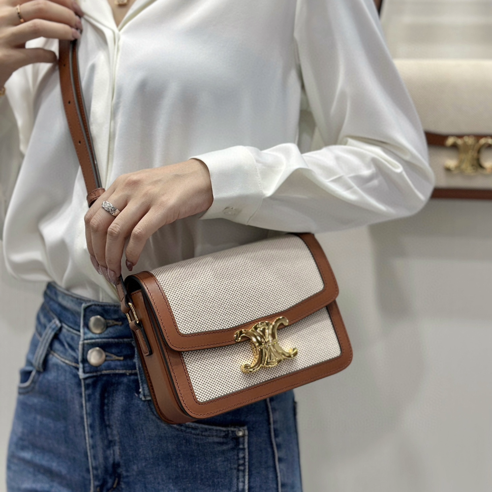 • 셀린느 클래식 트리오페 숄더백 화이트 스몰 188882