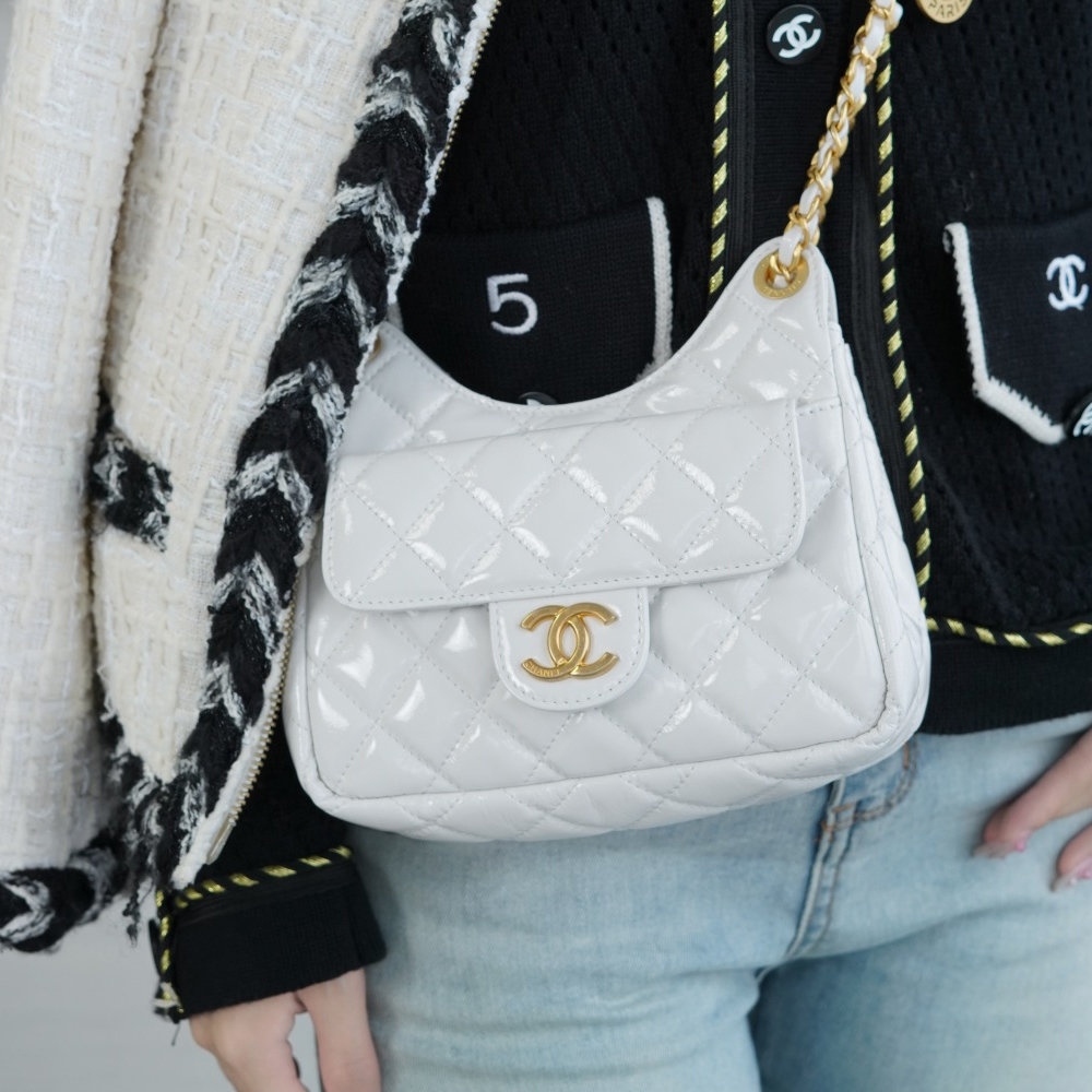• 팬더샵 샤넬 23C 호보백 카프스킨 & 골드 유광 화이트 스몰