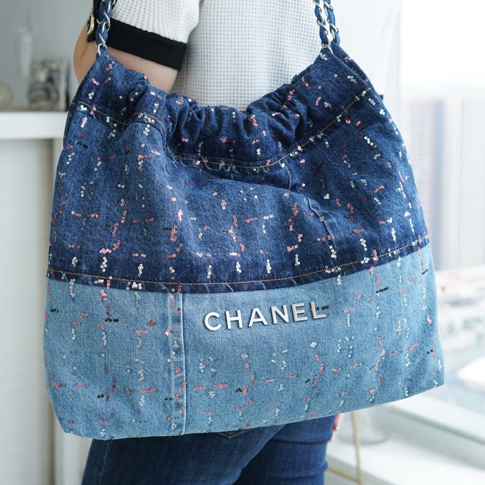 • 팬더샵 샤넬 23A 데님 스티치 22백 미디엄 은장