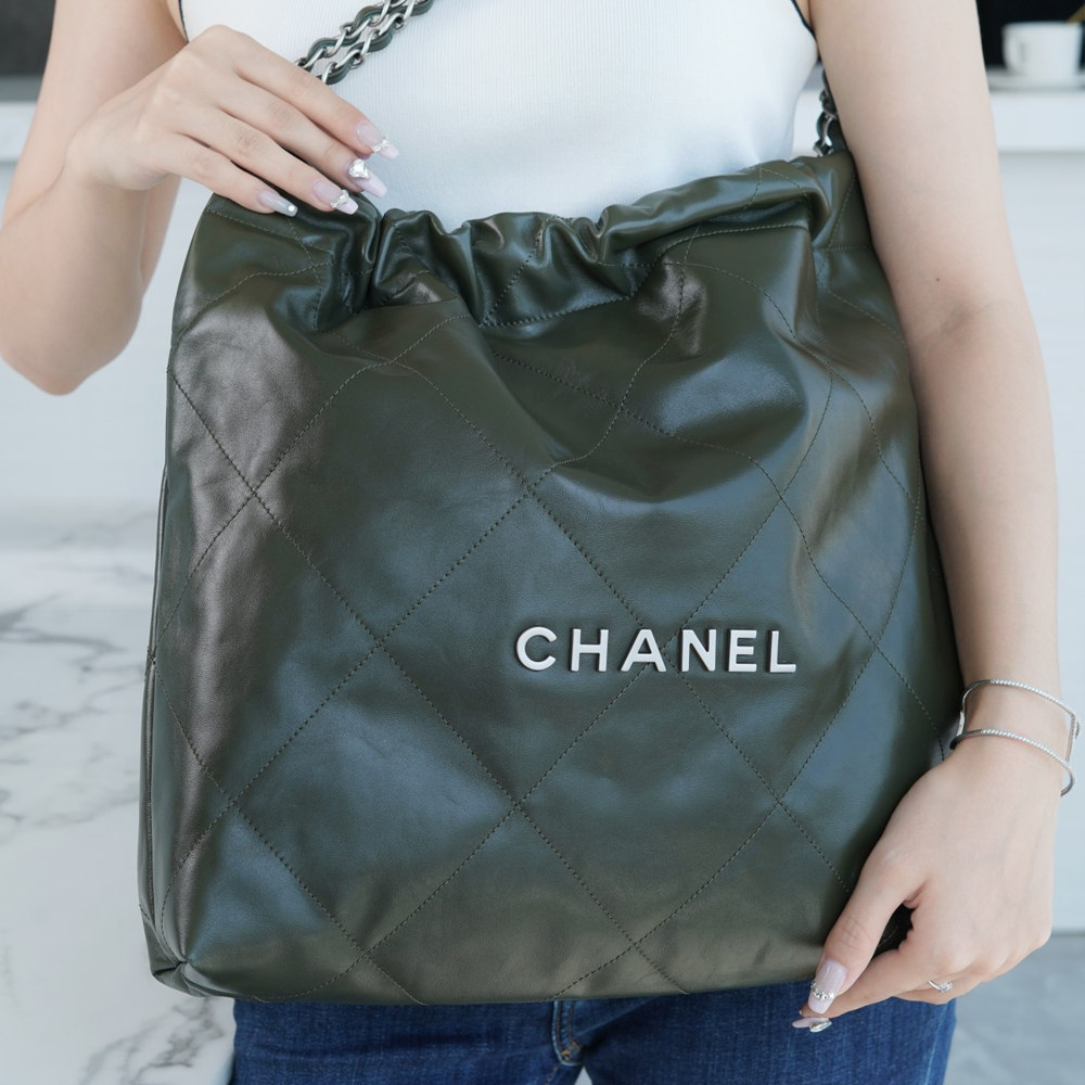 • 팬더샵 샤넬 23A 22백 올리브 그린 미디엄 은장