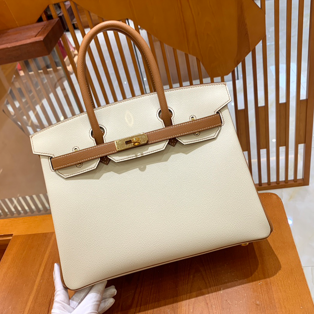 • 그린엘 에르메스 버킨 30 엡송가죽 브라운 & 크림 화이트 금장 버클
