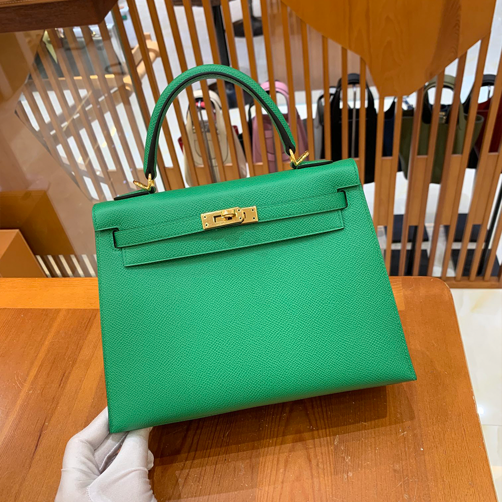그린엘 에르메스 켈리 25 엡송 뱀부 그린 금장 버클 > 에르메스
