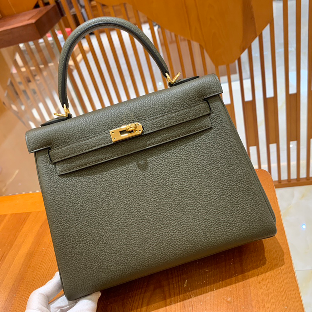 그린엘 에르메스 켈리 25 토고 그레이 그린 골드 버클 > 에르메스