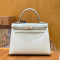 그린엘 에르메스 켈리 28 엡송 밀크쉐이크 화이트 & 윈드브레이커 그레이 골드 버클 > 에르메스