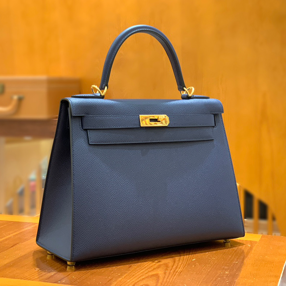 그린엘 에르메스 켈리 28 엡송 사파이어 블루 골드 버클 > 에르메스