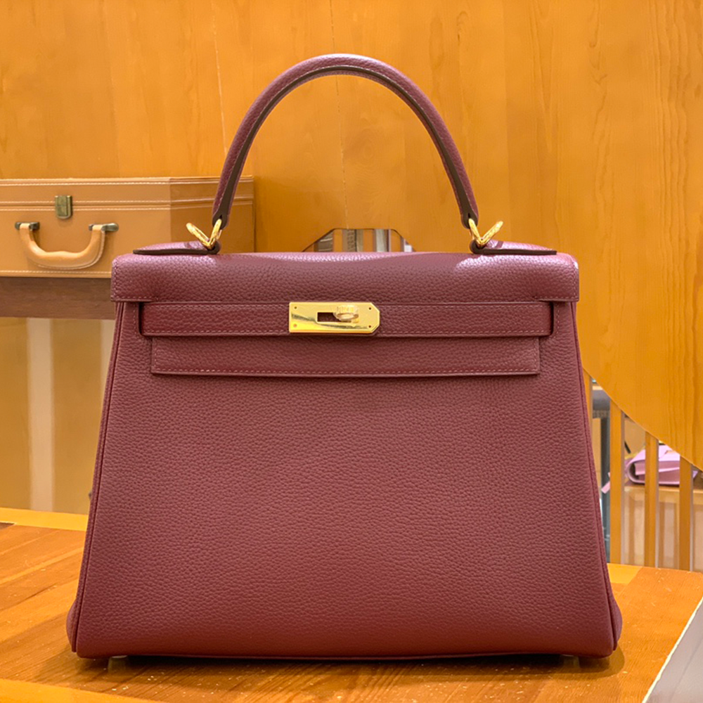 그린엘 에르메스 켈리 28 토고 석류 레드 골드 버클 > 에르메스