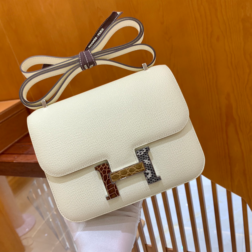 그린엘 에르메스 콘스탄스 18 엡송 크림 화이트 쓰리피스 가죽 버클 > 에르메스