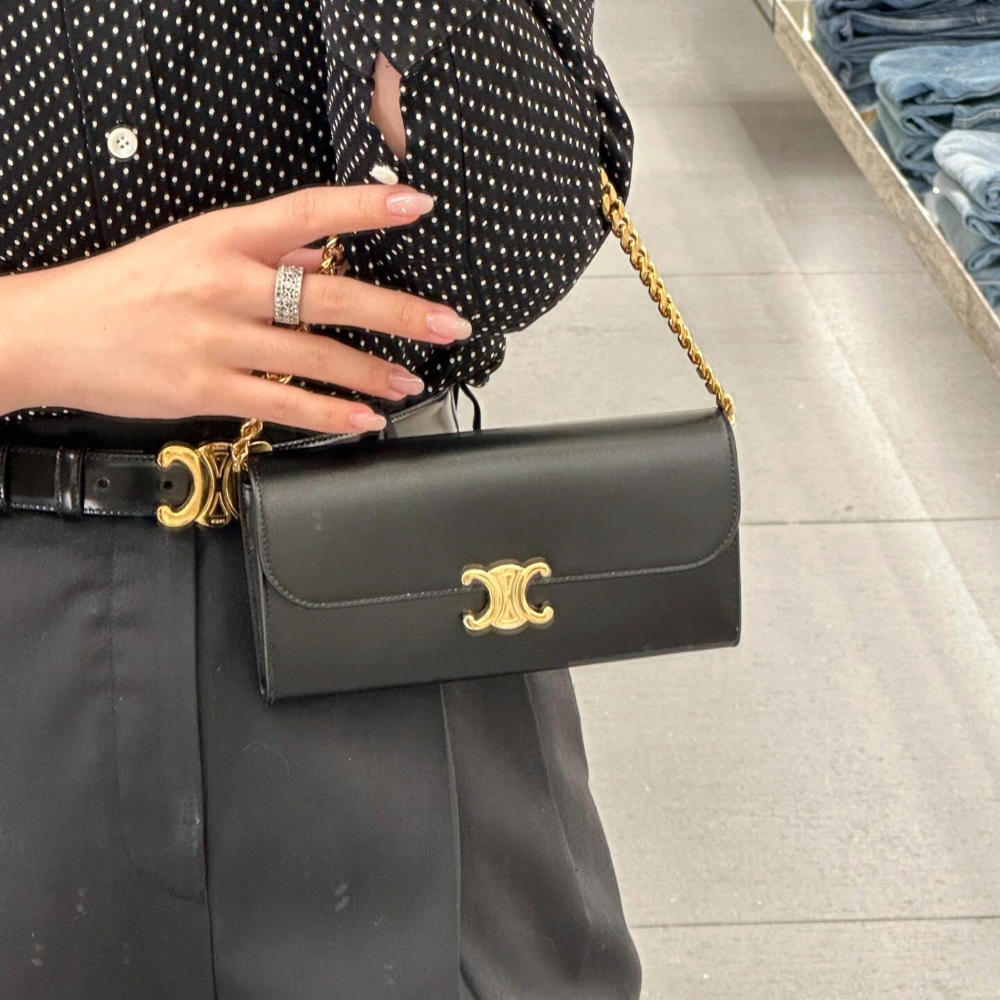 셀린느 라지 트리옹프 샤이니 카프스킨 월렛 블랙 10E313 > 여성 가방