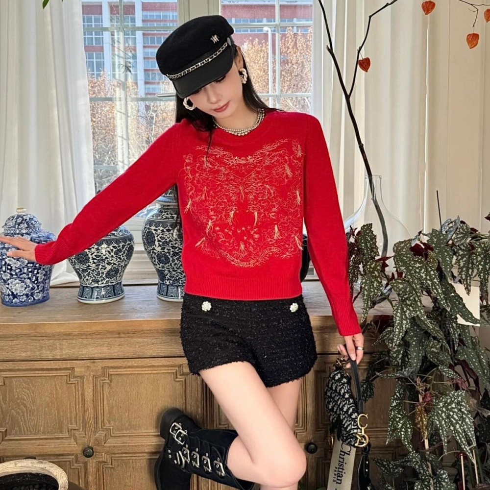 디올 레드 골드 자수 나비 긴팔 스웨터 > 여성 의류