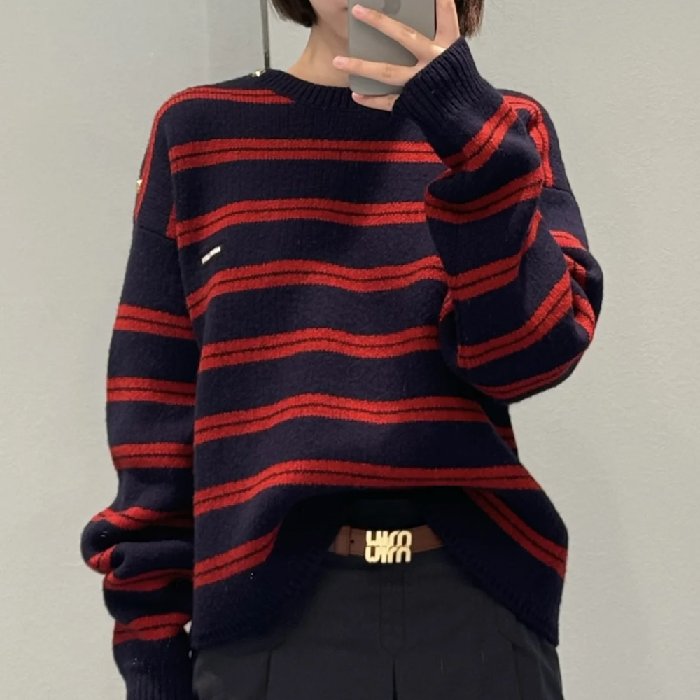 미우미우 체스트 로고 셰틀랜드 울 니트 > 여성 의류