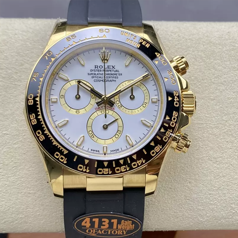 • QF공장 롤렉스 코스모그래프 데이토나 화이트 다이얼 옐로우골드 금통 러버밴드 m126518