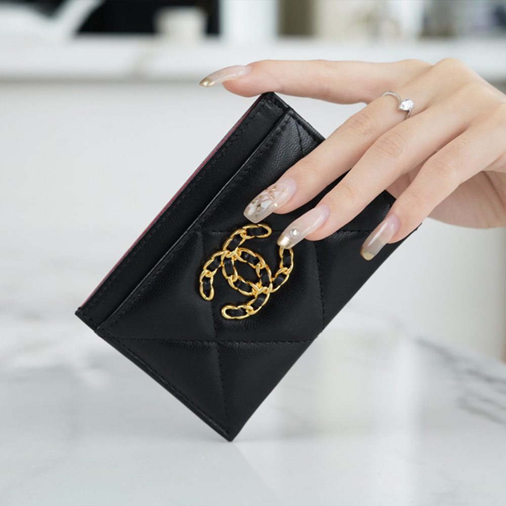 • 팬더샵 샤넬 19 카드 홀더 램스킨 & 골드 메탈 블랙