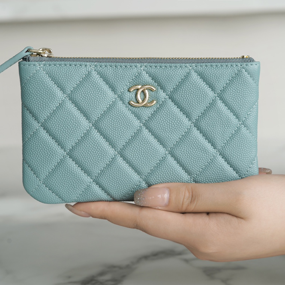 팬더샵 샤넬 클래식 지퍼 케이스 그레인드 샤이니 카프스킨 티파니 블루 > 악세사리