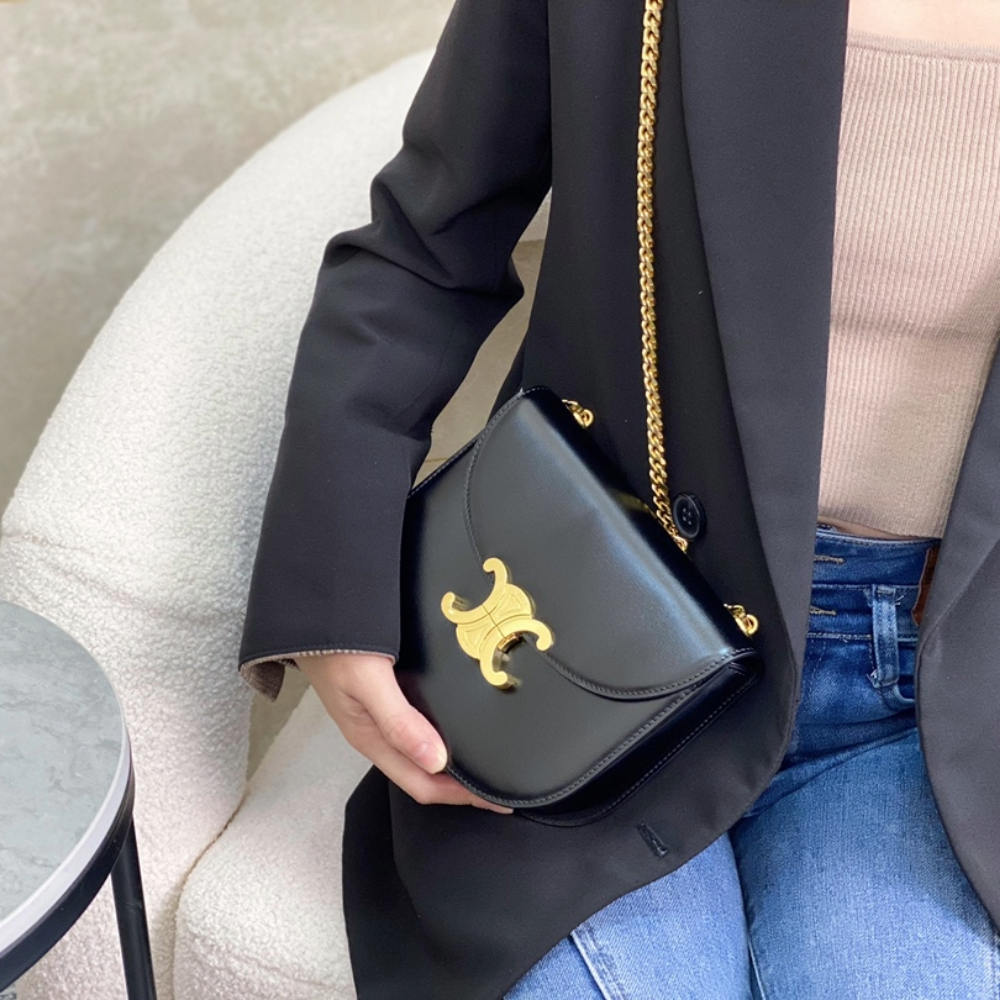 • 셀린느 트리오페 체인백 베사체 샤이니 카프스킨 블랙 110973