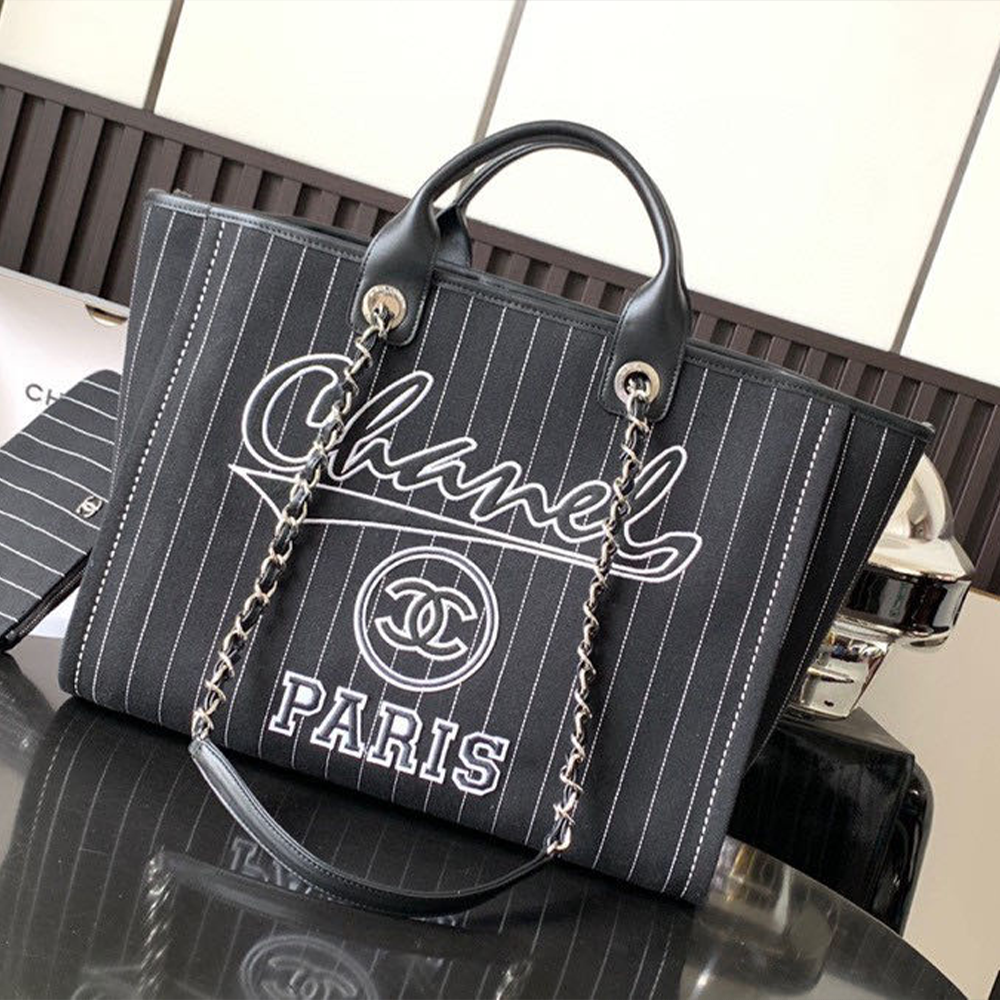 • 지존샵 샤넬 시즌 스트라이프 도빌백 토트 숄더 블랙 투톤 A66941