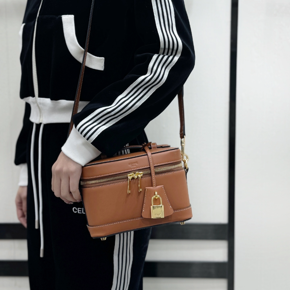 • 셀린느 샤이니 카프스킨 베니티백 탄 119463