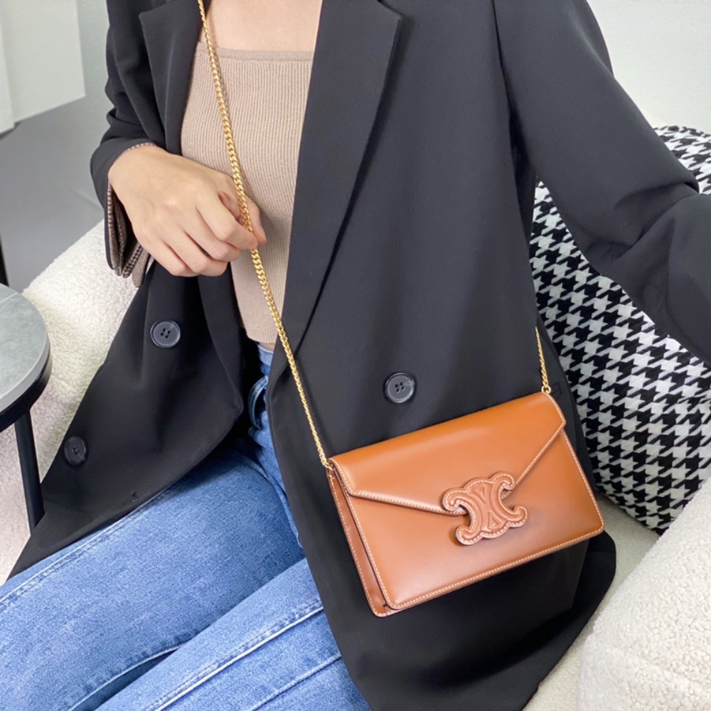 • 셀린느 퀴르 트리오페 월렛 체인 숄더백 탄 10J733