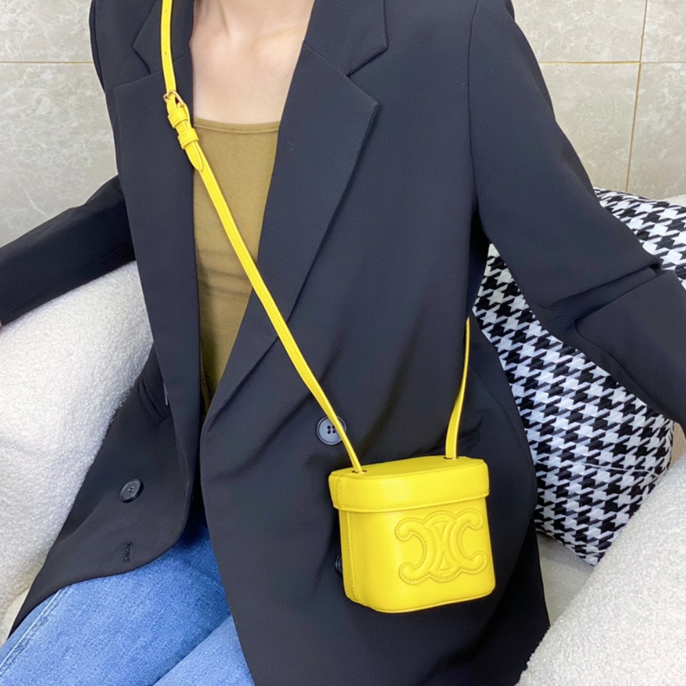 • 셀린느 트리오페 퀴르 스몰 박스 숄더백 옐로우 199263