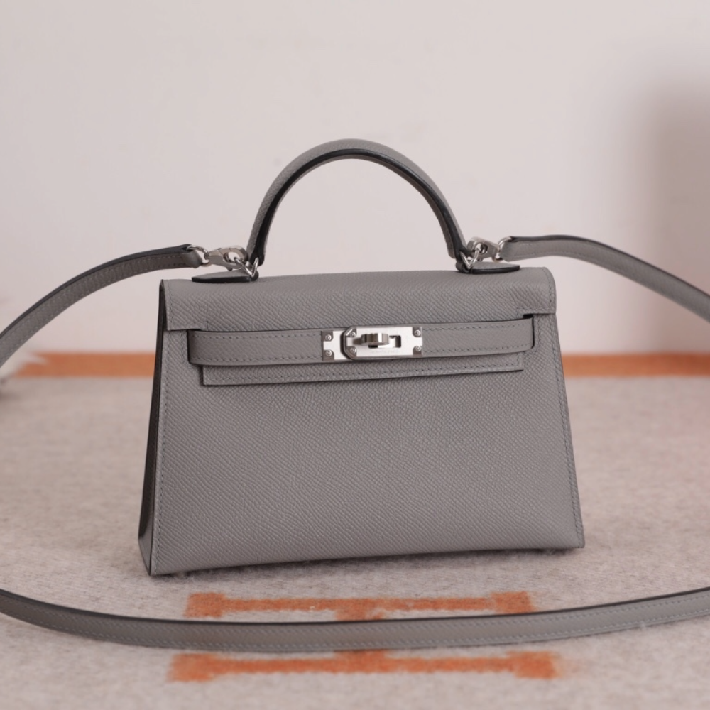 • 반수공 에르메스 미니 켈리백 그레이 은장 엡송