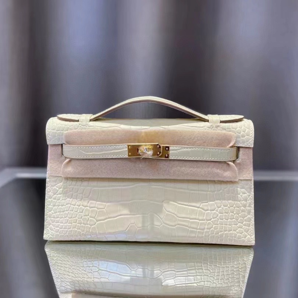 반수공 에르메스 미니 켈리백 나타 화이트 금장 악어가죽 > 에르메스
