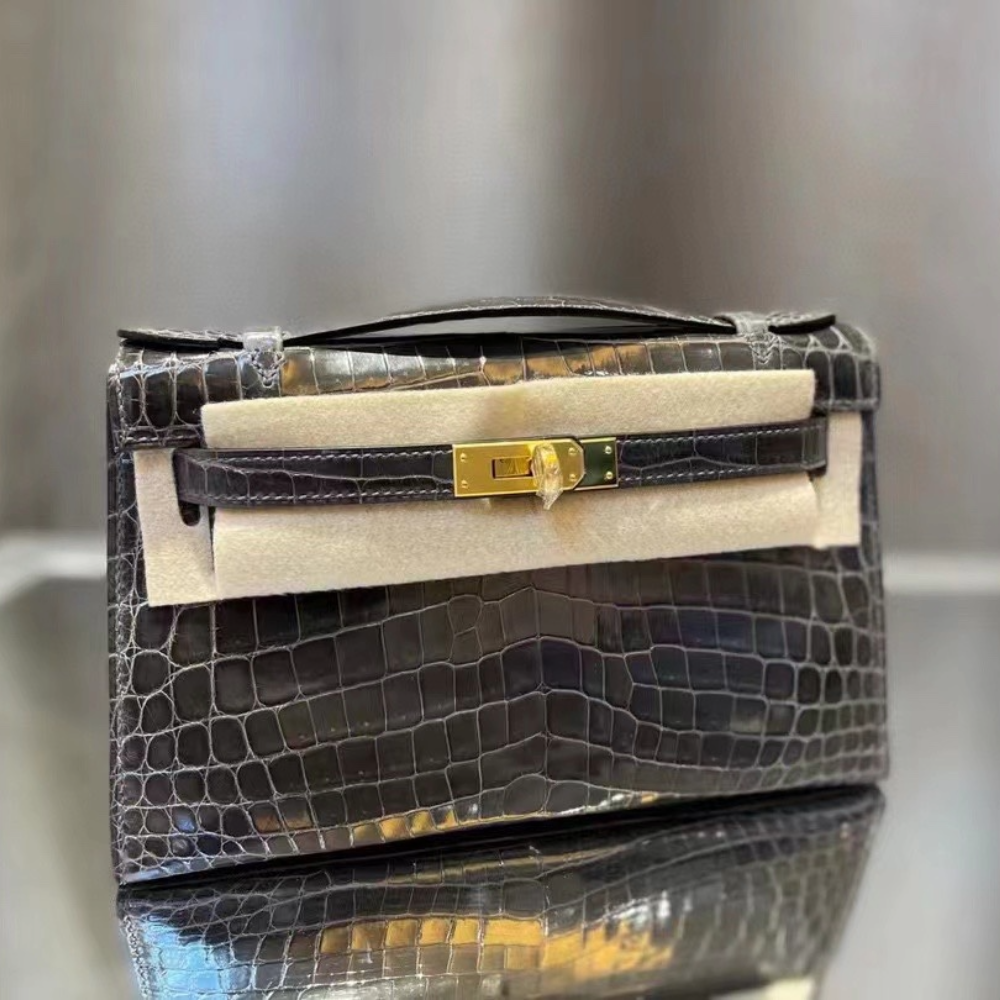 반수공 에르메스 미니 켈리백 그레이 금장 샤이니 악어가죽 > 에르메스