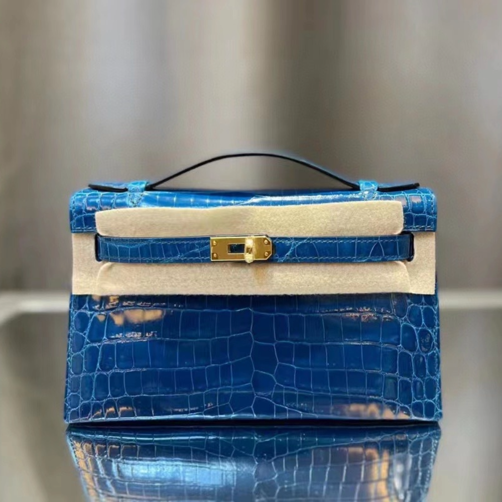 반수공 에르메스 미니 켈리백 블루 금장 샤이니 악어가죽 > 에르메스