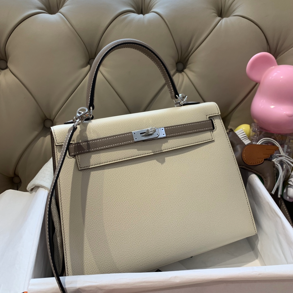 반수공 에르메스 켈리백 25 화이트 에토프 은장 엡송 > 에르메스