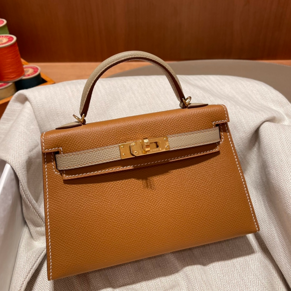 • 반수공 에르메스 미니 켈리백 골드브라운 그레이 금장 엡송