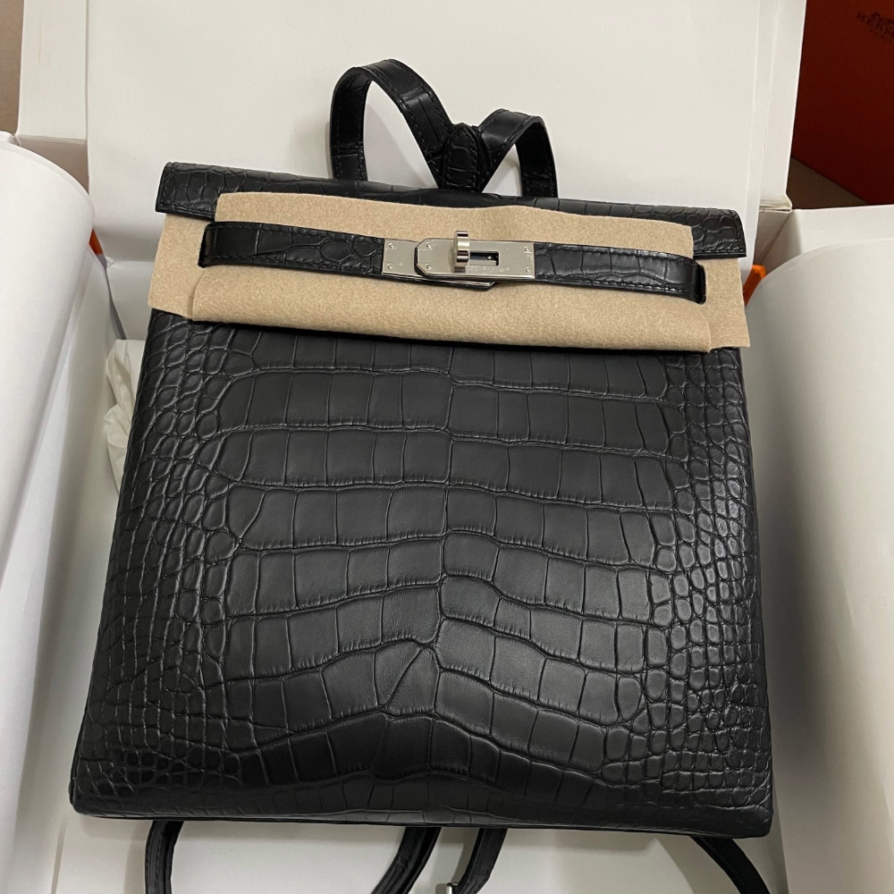 • 반수공 에르메스 켈리 아도 백팩 블랙 은장 악어가죽