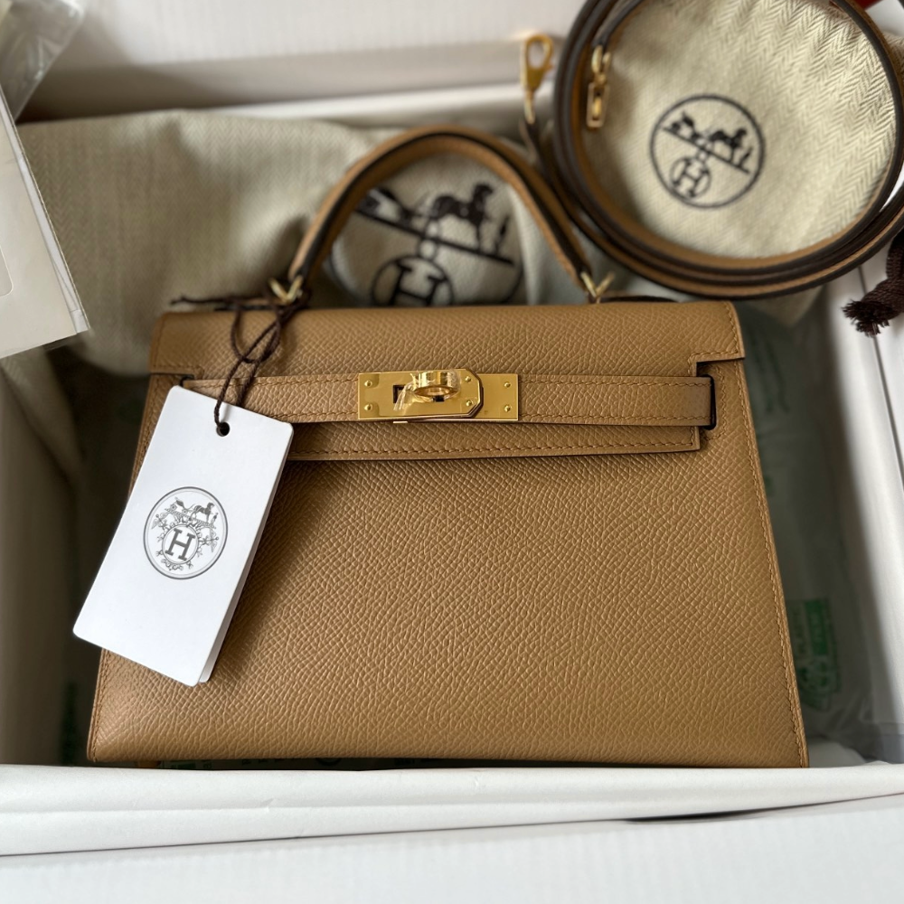 • 반수공 에르메스 미니 켈리백 20 카멜 금장 엡송
